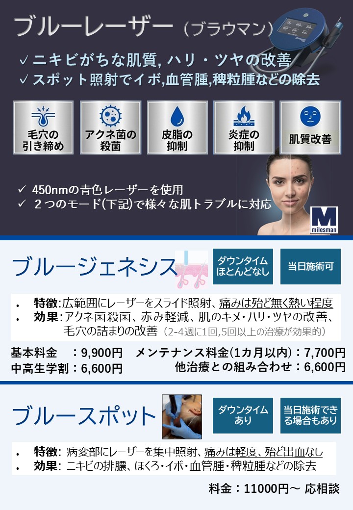 ブルーレーザー(ニキビ・赤み・肌のハリ・キメ)